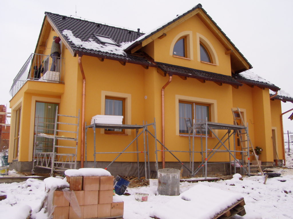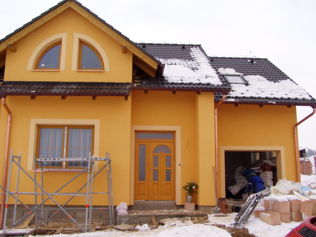 Provedení opravdu skvělé. Omítka se i po třech letech neodlopuje, žádná plíseň. Omítka je silikonová, voda po ni opravdu stéka, po dešti nemění barvu. Firmu doporučujeme!!